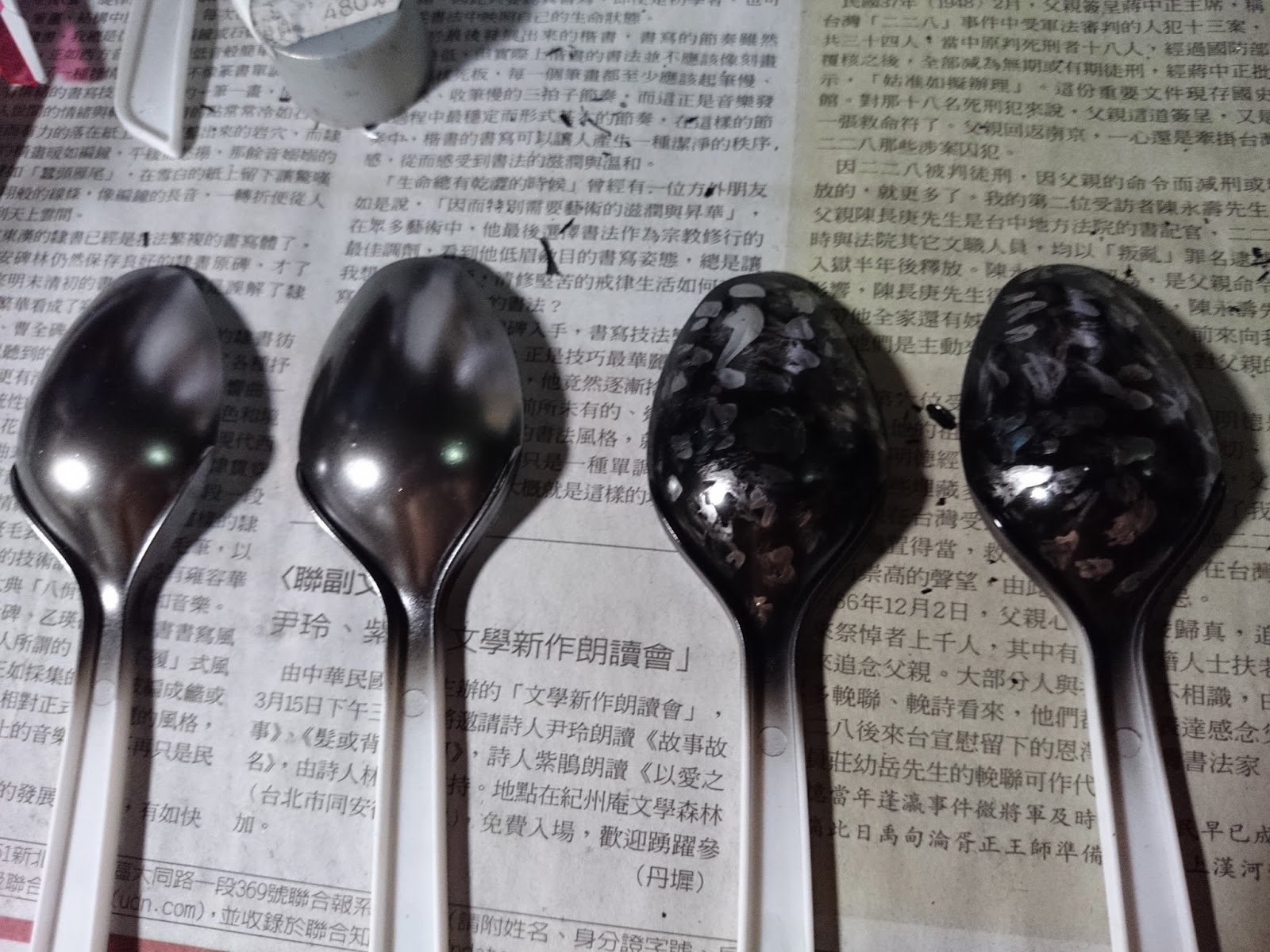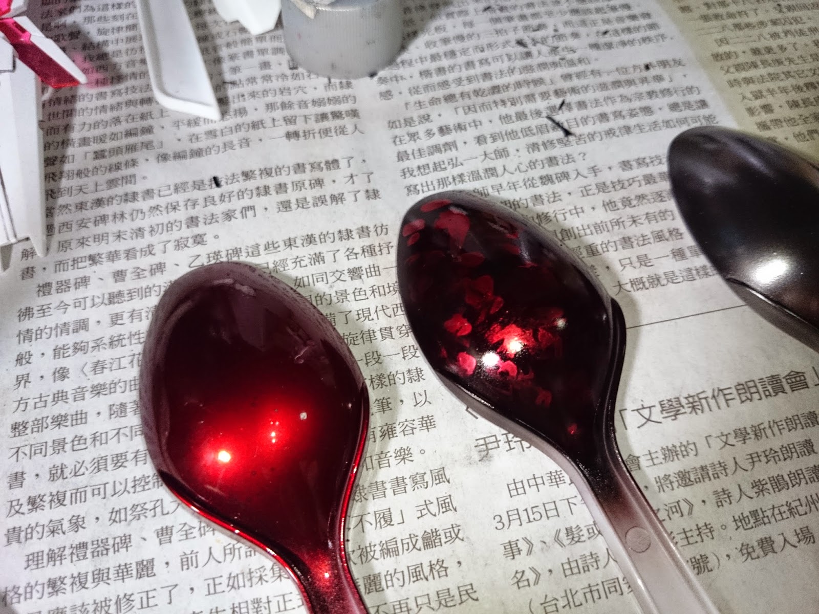 右邊兩支是用筆沾銀漆輕刷(第一次嘗試,實驗性質)